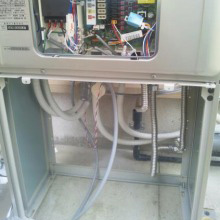 既設給湯器の取り外しをします