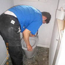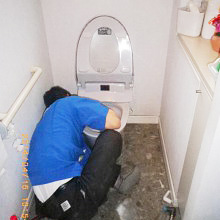 排水位置を確認しながら便器を固定します