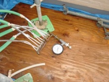 固定したら、ガスの接続。ガス漏れ確認も行います