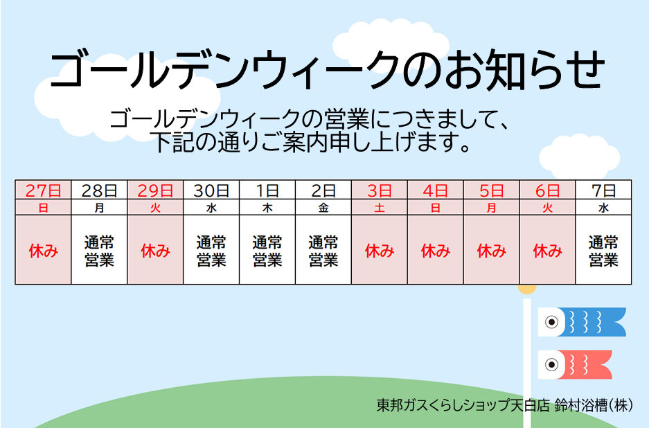 ゴールデンウィークのお知らせです。